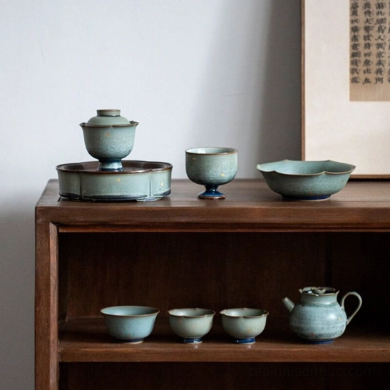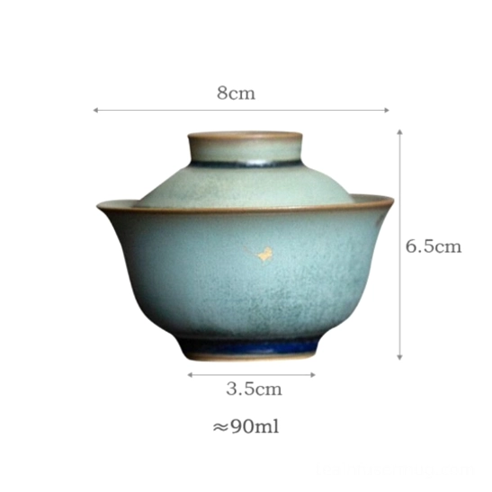 - Unique Glaze Finish: Features a soft celadon green base glaze with natural golden speckle variations, accented by a deep navy rim. No two gaiwans are identical, making yours a one-of-a-kind piece for your tea collection.