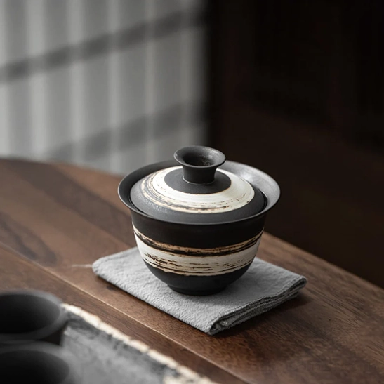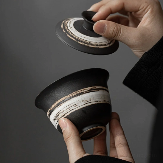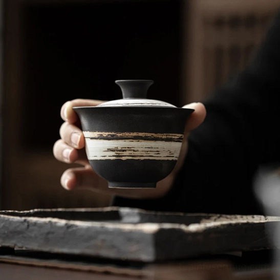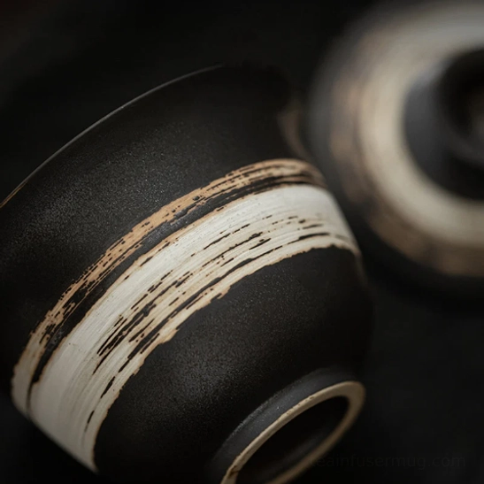 - Unique rustic striped glaze with a matte black base creates a calm, minimalist禅意 (zen-inspired) aesthetic for any tea space