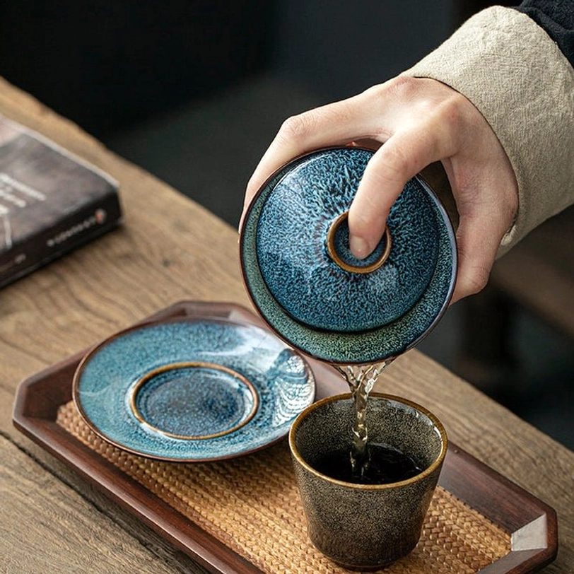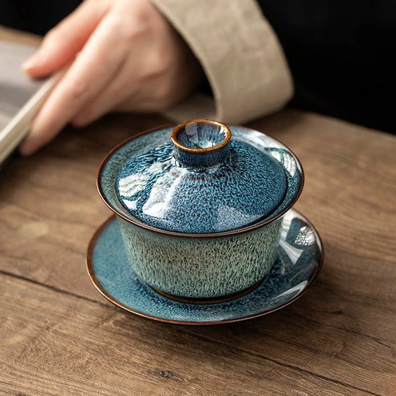 - Unique Jianzhan Glaze Work: Featuring natural kiln-formed blue-green glaze transitions, no two Gaiwans have identical patterns, giving your set exclusive character