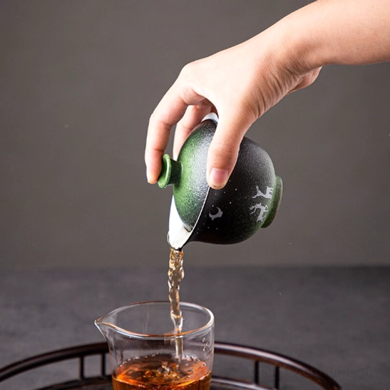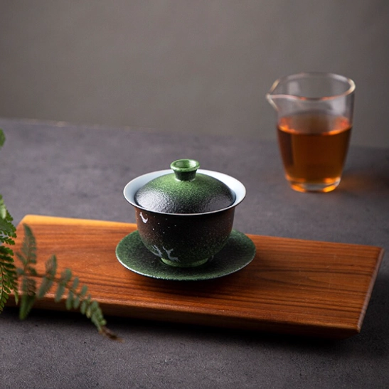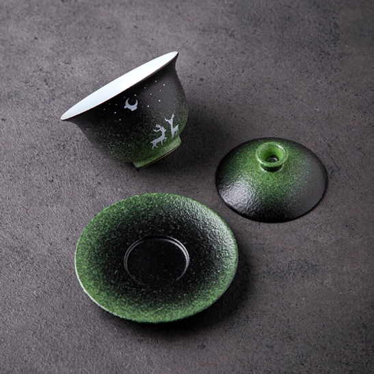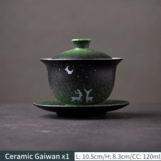 - Artistic Modern Design: Blends traditional gaiwan structure with a calming gradient green textured glaze, decorated with a gentle moonlit deer forest motif that adds natural elegance to any tea space.