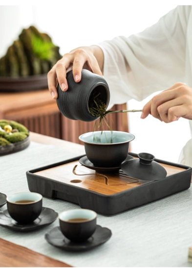 This gaiwan tea cup set fits seamlessly into any space: