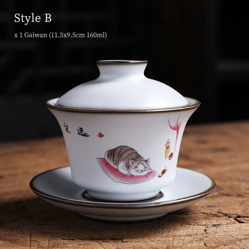 - Cat Motif Styles: Adorable kawaii cat illustrations bring cozy warmth and playful charm to your daily tea routine. Cats symbolize good fortune and relaxation in Chinese culture, making these designs perfect for creating a calm, joyful tea space.