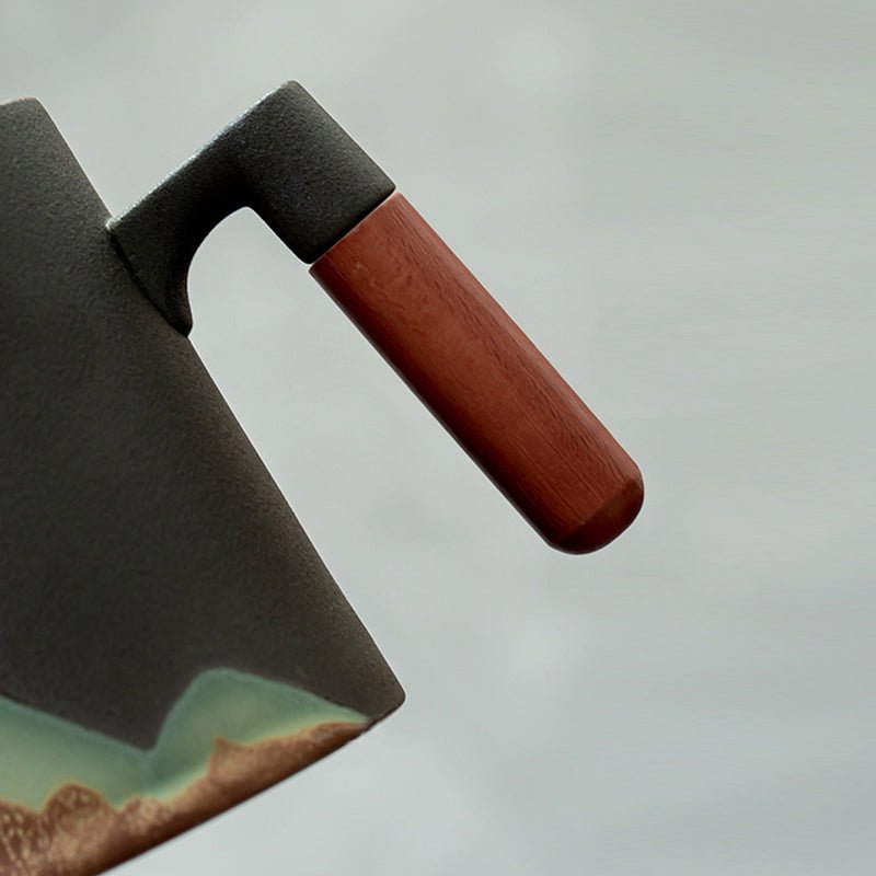 This mountain infuser tea mug is crafted using traditional Chinese ceramic firing techniques, resulting in a smooth, non-porous surface that is easy to clean, resistant to stains and odors, and built for years of daily use. The natural wood handle is sanded smooth for a warm, comfortable feel that complements the cool ceramic perfectly.