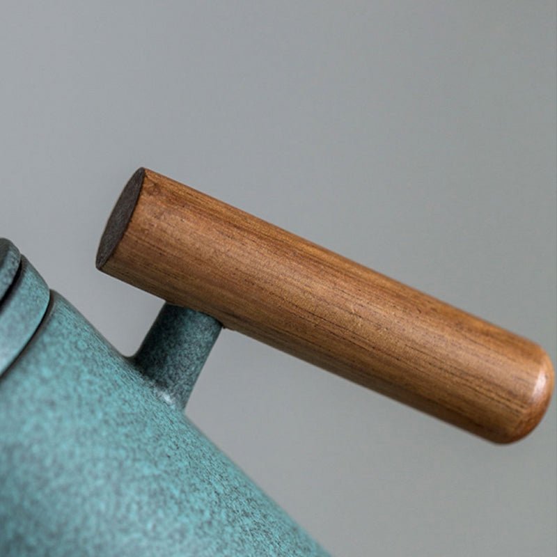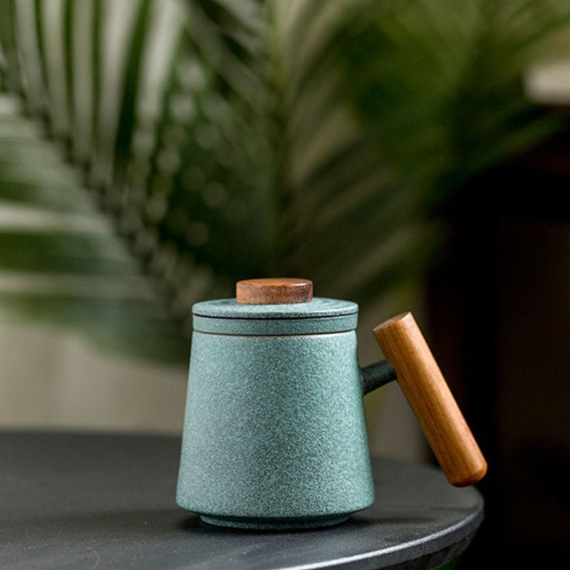 - Premium Material Combination: High-fired ceramic cup body with a soft matte textured finish offers good heat retention and a comfortable non-slip grip. Natural solid wood handle and lid knob stay cool to touch, preventing scalding when holding hot tea. The combination of cool ceramic and warm natural wood creates a balanced, elegant aesthetic.