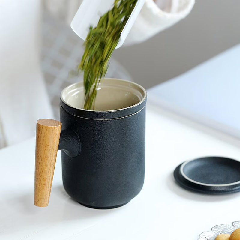 Fitted with a solid natural wood handle, this tea mug stays cool to the touch even when filled with boiling water. The naturally textured wood adds a warm, organic touch to the minimalist design, and provides a comfortable, non-slip grip for everyday use.