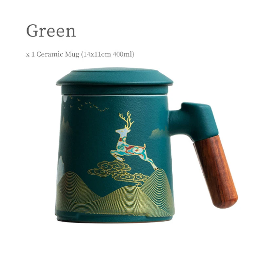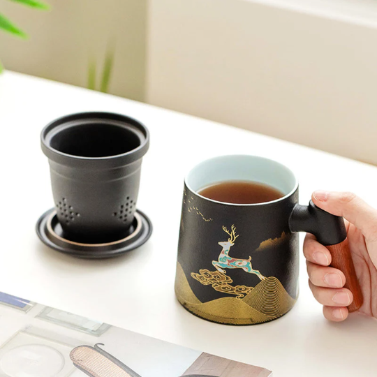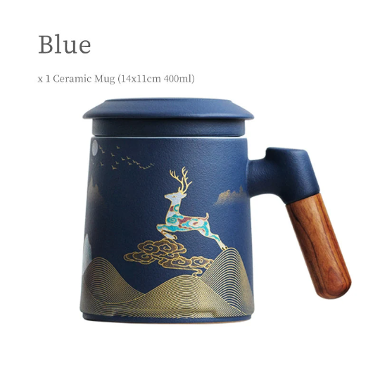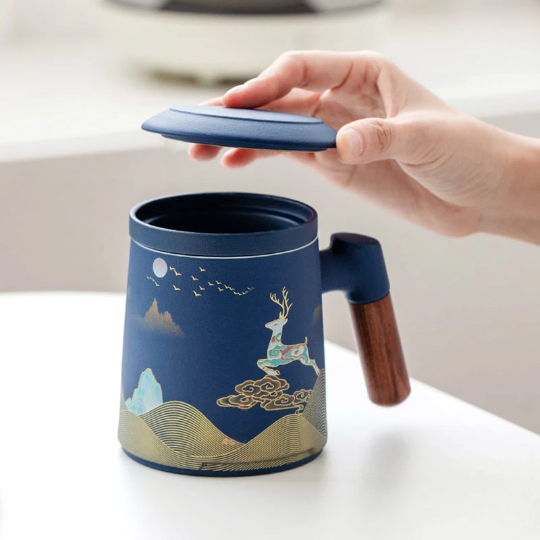 In Chinese culture, the traditional patterns on this mug carry beautiful symbolism: the deer represents good fortune and longevity, mountains represent stability and prosperity, and clouds symbolize good luck and smooth sailing. This makes our tea mug the perfect gift for: