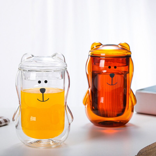 Adorable Bear-Shaped Double Wall Glass Tea Mug For Everyday Enjoyment