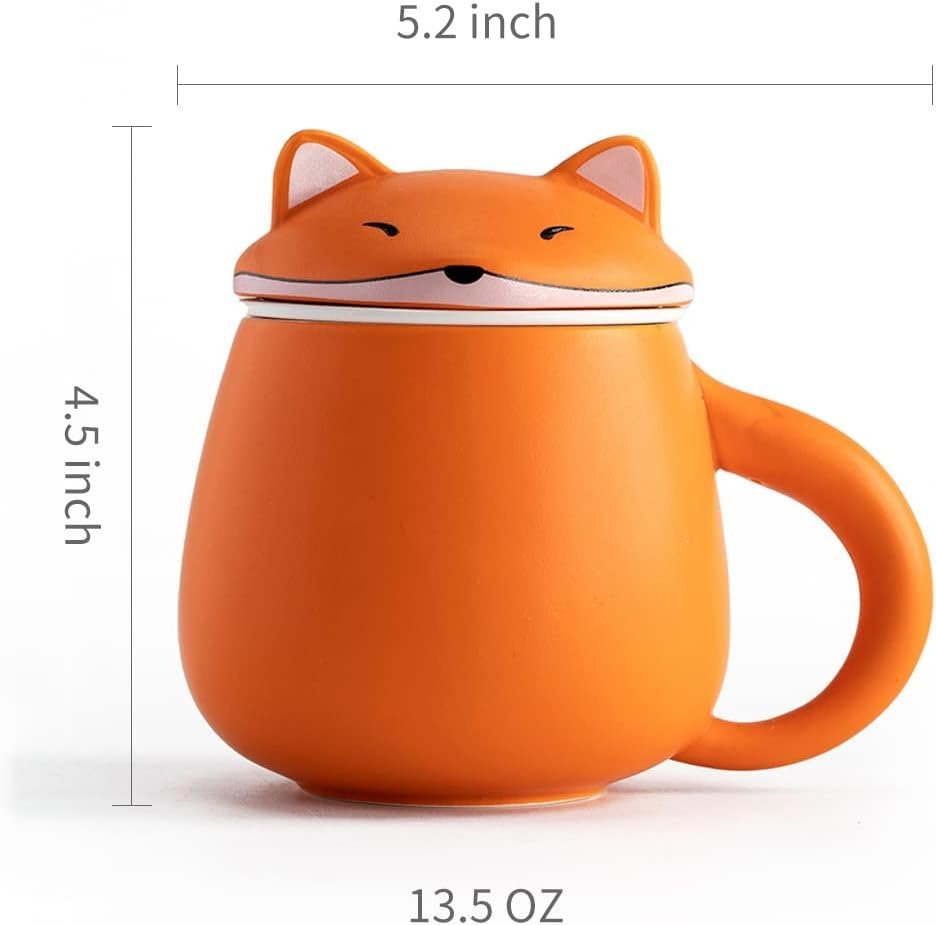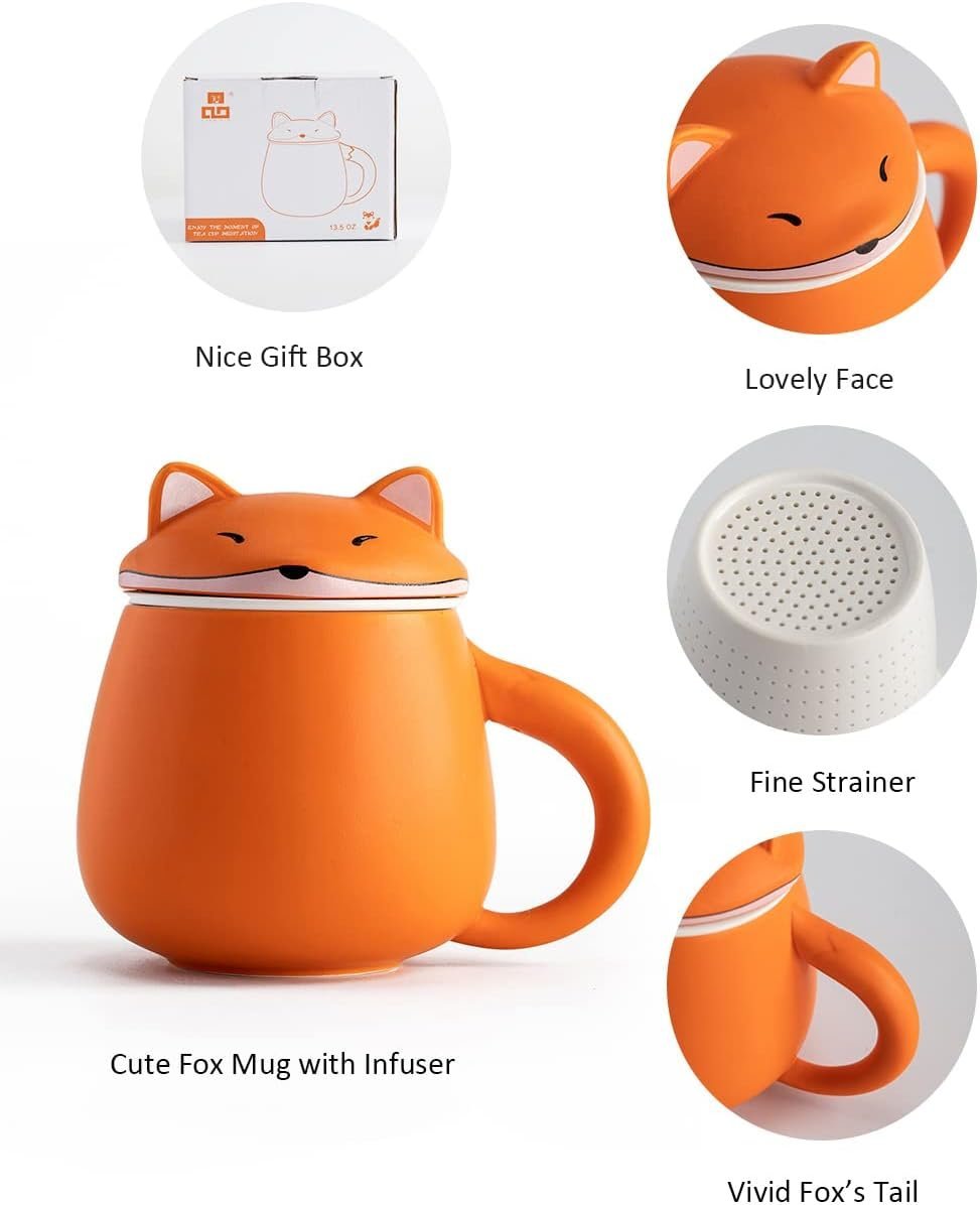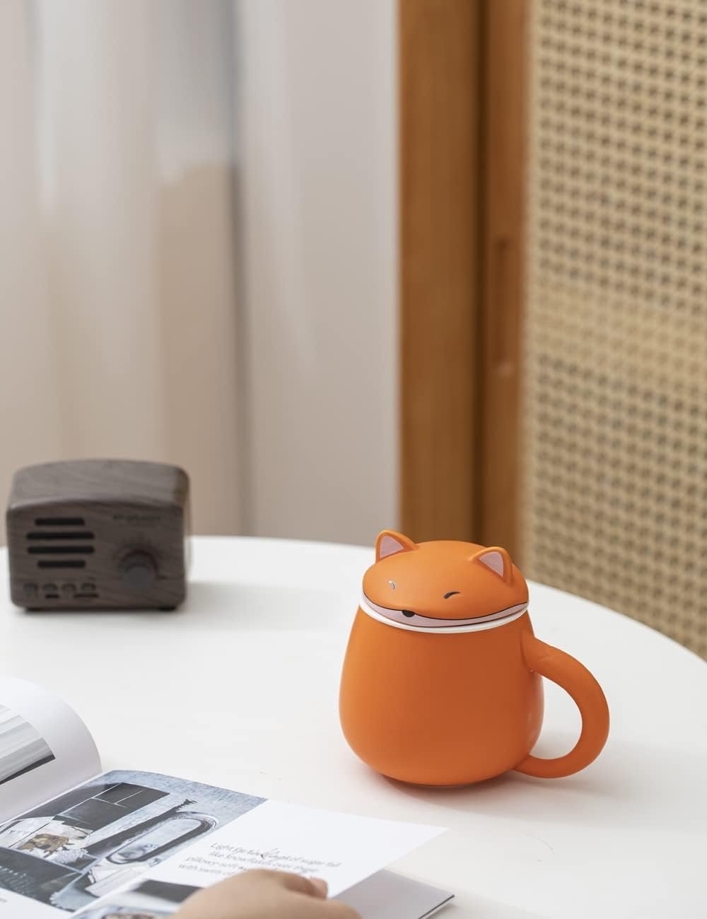 - Playful, Practical Design: Entirely shaped like a friendly fox: the fox face doubles as a snug lid that keeps dust out and retains heat longer, while the fox tail curves into a comfortable, easy-to-grip handle. Warm orange fur with soft pink accents and cute black features make this mug as decorative as it is useful.