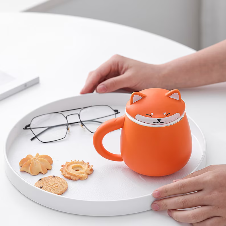 • Charming playful design: Available in two warm, cheerful color options: bright orange and sunny yellow, each featuring a sleepy smiling Shiba Inu lid that adds instant cuteness to any desk or countertop.