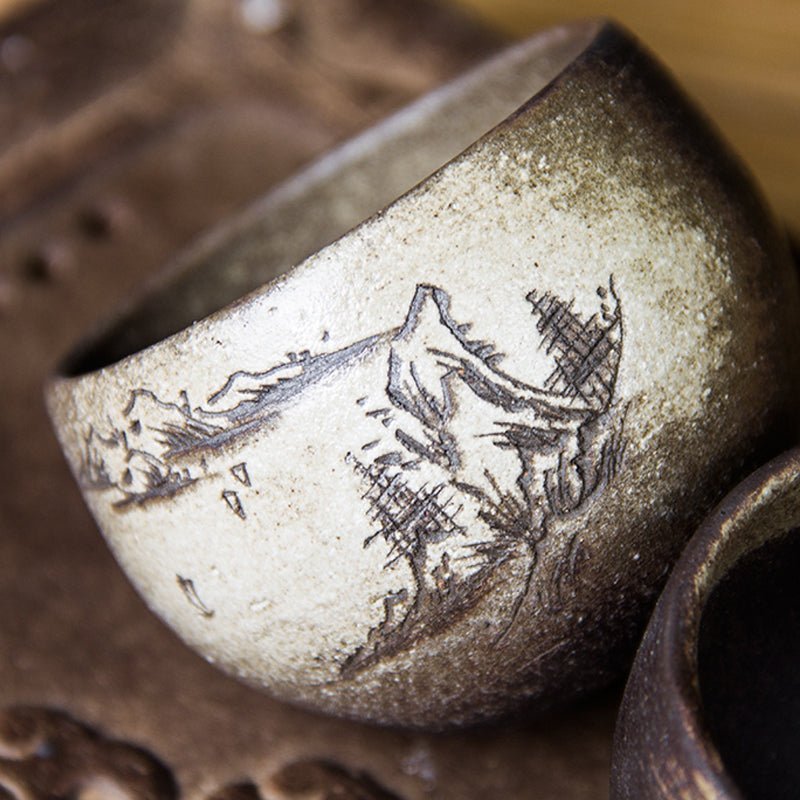 Each tea bowl is handcrafted from high-quality rustic ceramic, with a natural textured surface that delivers a warm, comfortable grip. The rough, earthy texture of this rustic ceramic improves insulation, keeping your tea at the perfect drinking temperature longer while enhancing the natural aroma of your leaves.