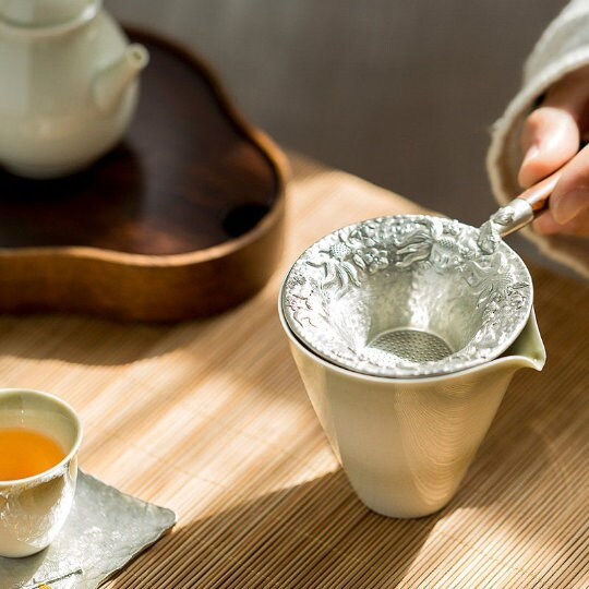 In traditional Chinese gongfu cha (kung fu tea) culture, a high-quality tea strainer is an indispensable part of the tea ceremony. It separates loose tea leaves from clear, smooth broth, elevating both the flavor and peaceful ritual of daily tea drinking. This handcrafted tin-plated tea strainer balances traditional Chinese artistry, durable practical function, and elegant design, making it a must-have for any tea lover’s collection.