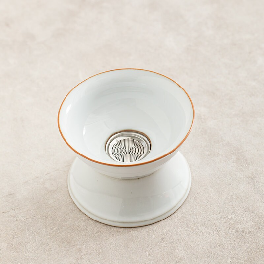 A tea strainer is an essential tool in traditional East Asian tea culture, used to separate loose tea leaves from brewed tea, resulting in a smooth, clean cup with no grit or stray leaves. This handcrafted ceramic tea strainer with matching stand combines traditional craftsmanship with modern practicality, elevating your daily tea ritual.