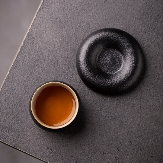 Japanese Black Clay Tea Cup and Sauser 50ml