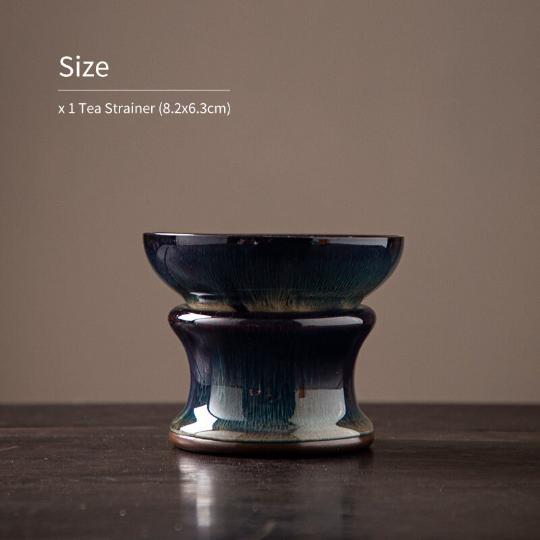 Every piece features a one-of-a-kind blue-green gradient glaze with shimmering, star-like kiln change effects. No two strainers are identical — you’ll own a truly unique work of ceramic art that adds elegant, rustic charm to any tea table. The combination of deep blue, soft green, and warm undertones evokes a clear night sky, making this strainer as much a decorative piece as it is a functional tea accessory.