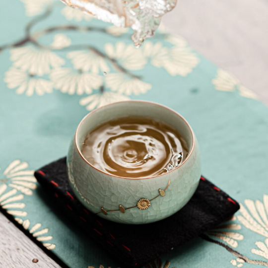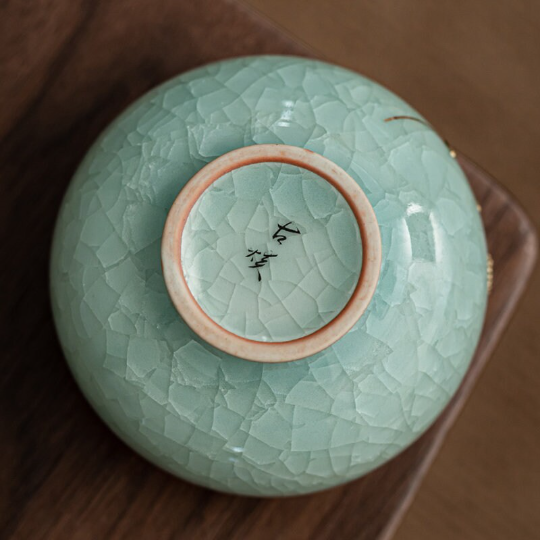 Originating from thousands of years of Chinese Gongfu tea culture, this handcrafted ceramic tea bowl combines two iconic traditional ceramic techniques: classic ice crackle glaze and decorative kintsugi detailing, bringing a one-of-a-kind artisanal touch to your daily tea ritual.