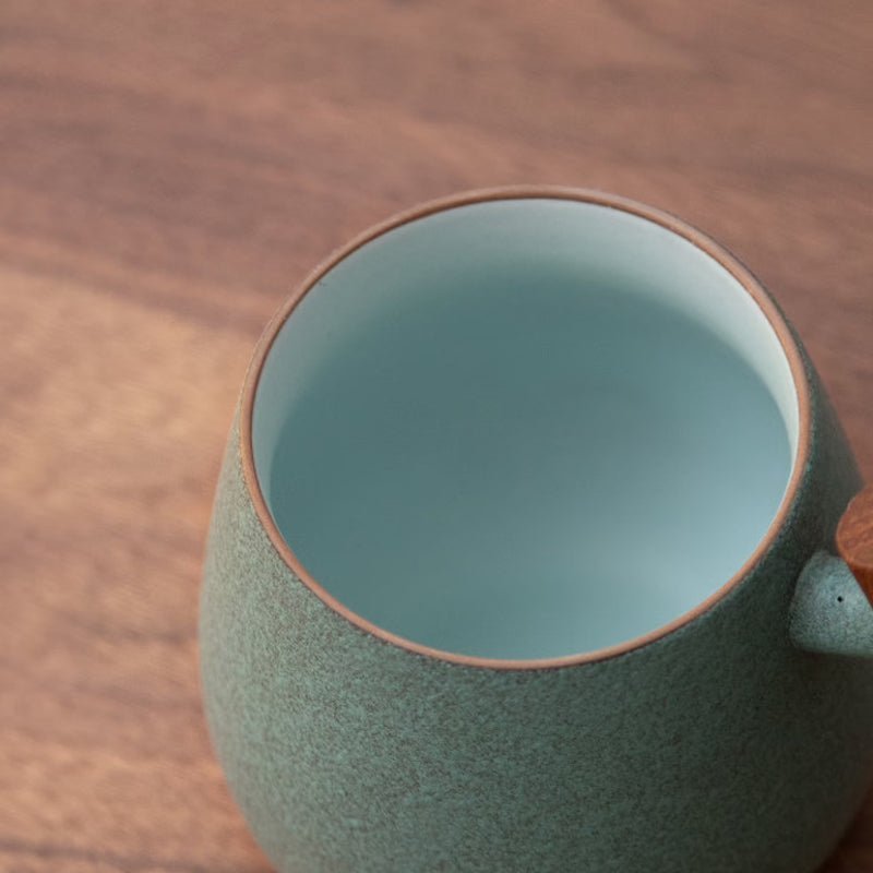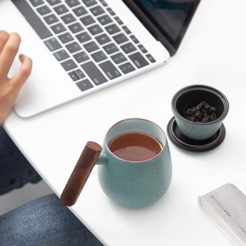 350ml Ceramic Tea Infuser Mug with Wood Handle Minimalist