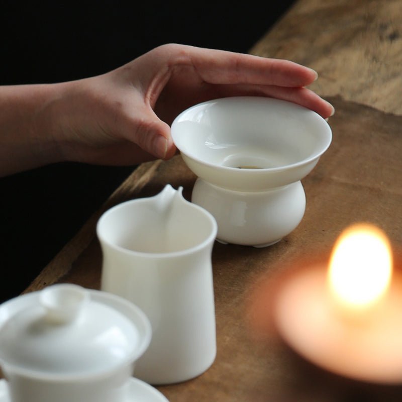 Authentic Chinese White Porcelain Tea Strainer for Pure, Smooth Brews