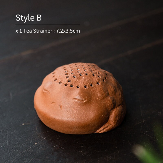 Simply rest the strainer across the rim of your teacup or teapot, pour your steeped tea through the toad body to catch leaves, then rinse and air dry after use. Over time, the zisha clay will absorb subtle tea oils, developing a unique rich patina unique to your use.