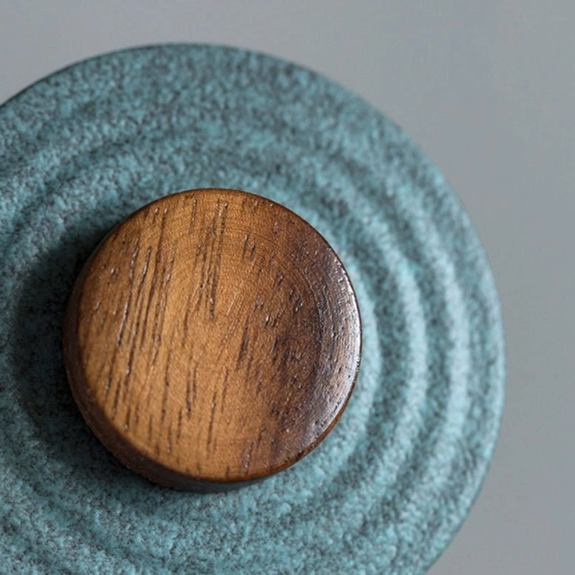 The contrast of cool ceramic and warm natural wood creates a balanced, elegant aesthetic that fits any decor style.