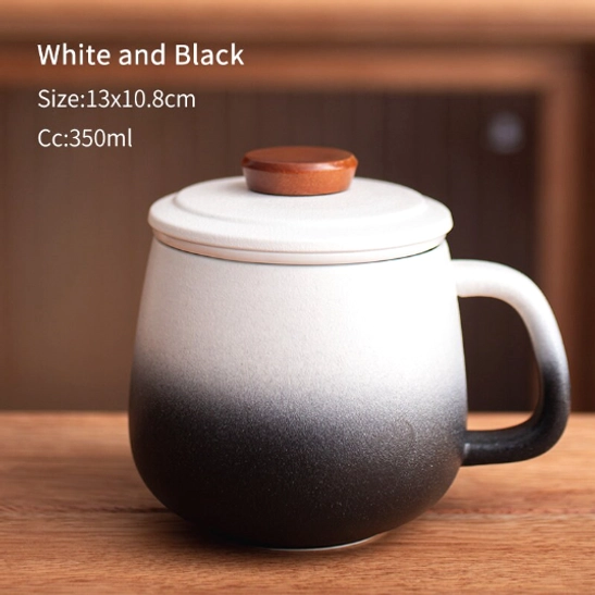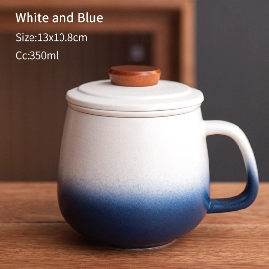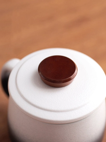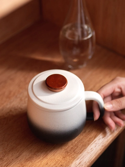 - Materials: Food-safe high-fired ceramic (mug + infuser), natural solid wood accent (lid knob)