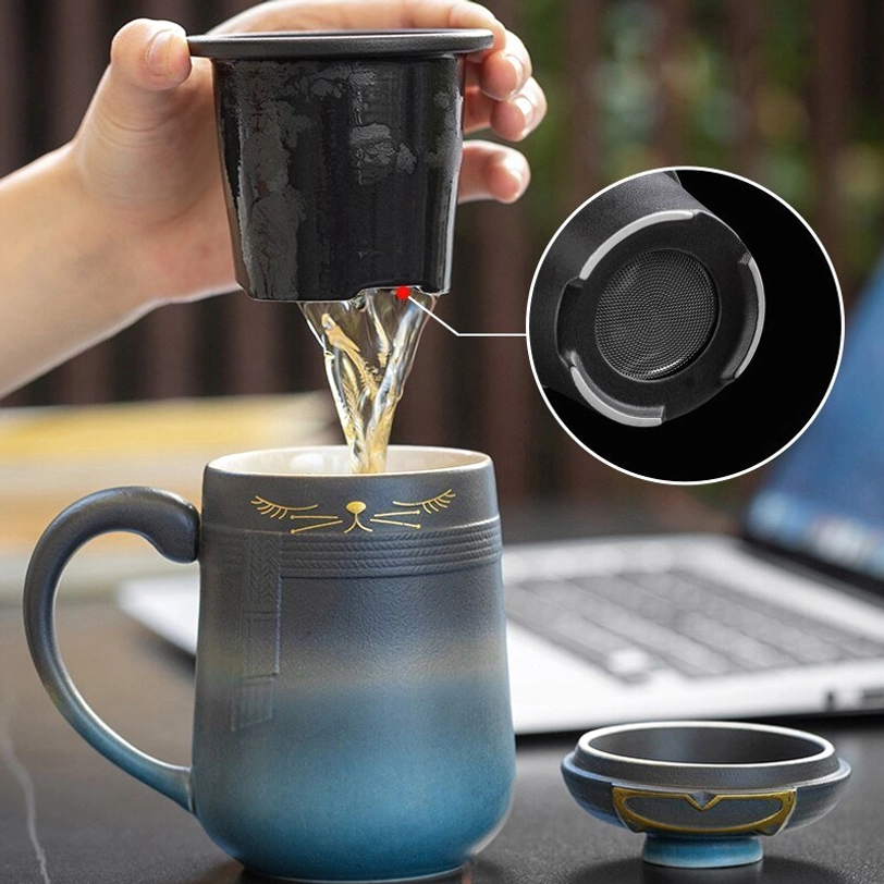 Upgrade your daily tea experience with this cute, functional cat ceramic tea infuser mug today!