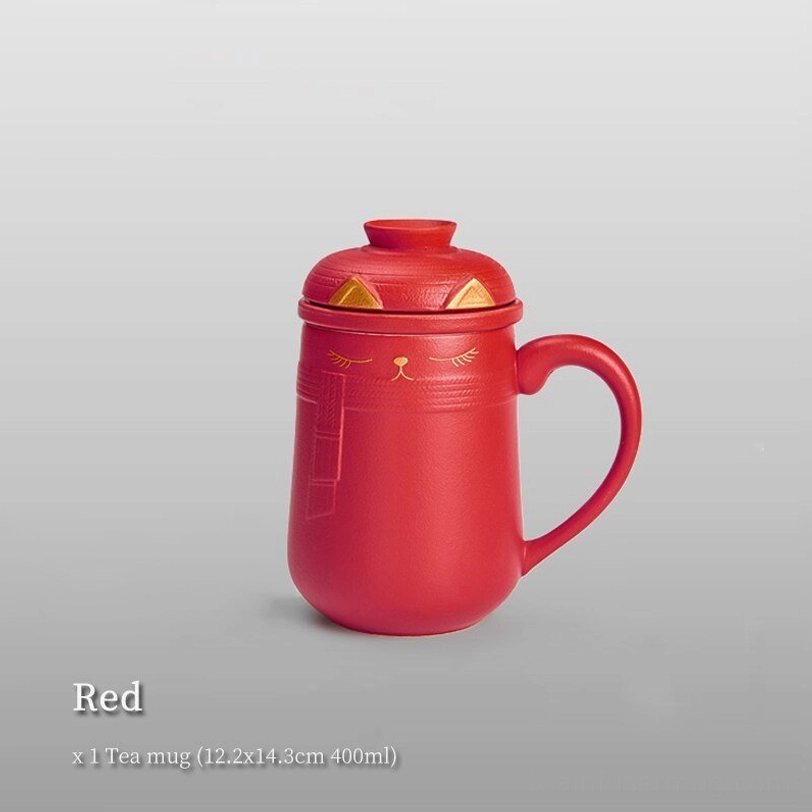 In Chinese culture, cats have long been associated with good fortune, positive energy, and protection from negative vibes. A cat-themed drinkware piece is considered an auspicious, lovely addition to daily life that brings gentle luck to your days. This tea infuser mug features thoughtful playful cat details: delicate golden cat facial accents on the cup body, and adorable cat ear details on the matching lid. It balances cuteness and practicality perfectly, turning every tea break into a little moment of fun.