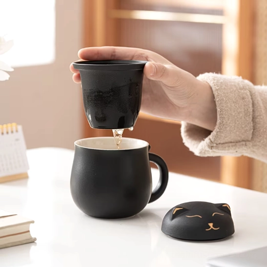For centuries, cats have been beloved companions to Chinese tea scholars and enthusiasts. Their calm, gentle energy and quiet curiosity align perfectly with the mindfulness and relaxation at the heart of traditional tea drinking. This cat-themed tea infuser mug carries on this warm tradition, bringing a sense of calm joy and cozy warmth to your daily tea ritual.