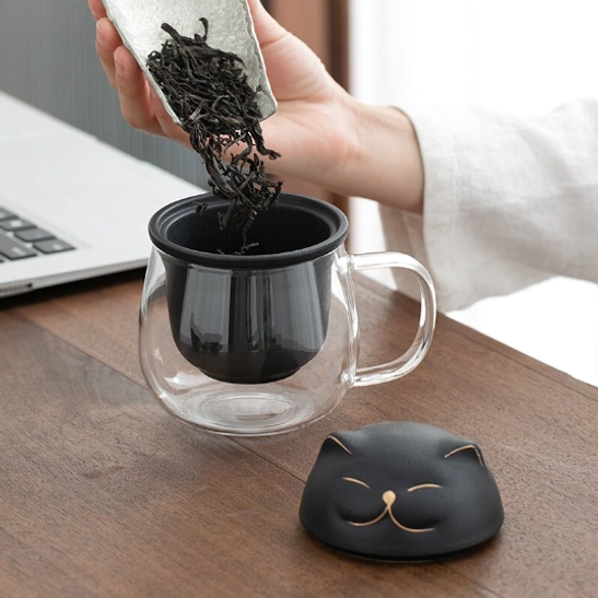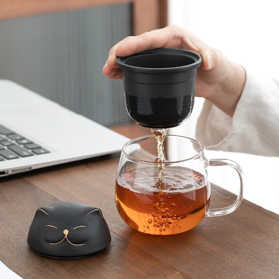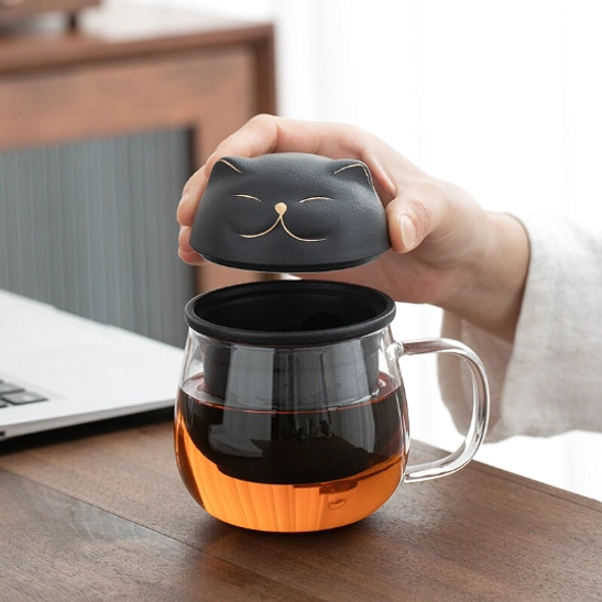 Cat Lid Glass Tea Infuser Mug: Enjoy Perfect Loose Leaf Tea Anywhere