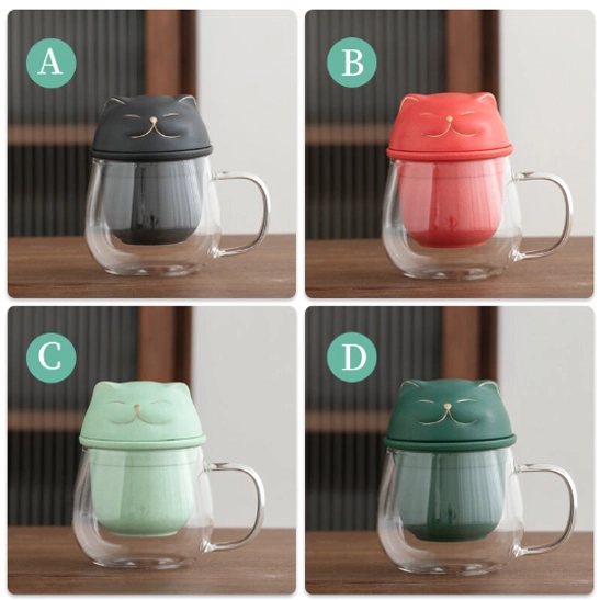- Food-Safe, Durable Materials: The mug body is crafted from premium food-grade high borosilicate glass, which is highly heat-resistant, crystal-clear, and free of harmful chemicals. The cute cat lid and tea strainer are made of smooth, food-coated ceramic for long-lasting daily use.