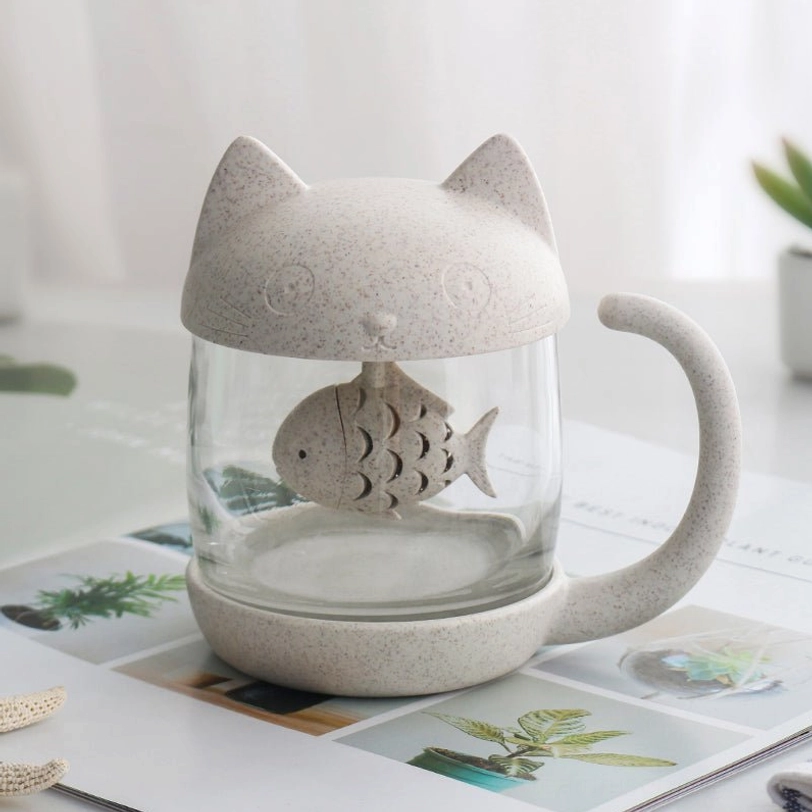 Whimsical Cat Glass Tea Infuser Mug for Daily Tea Joy
