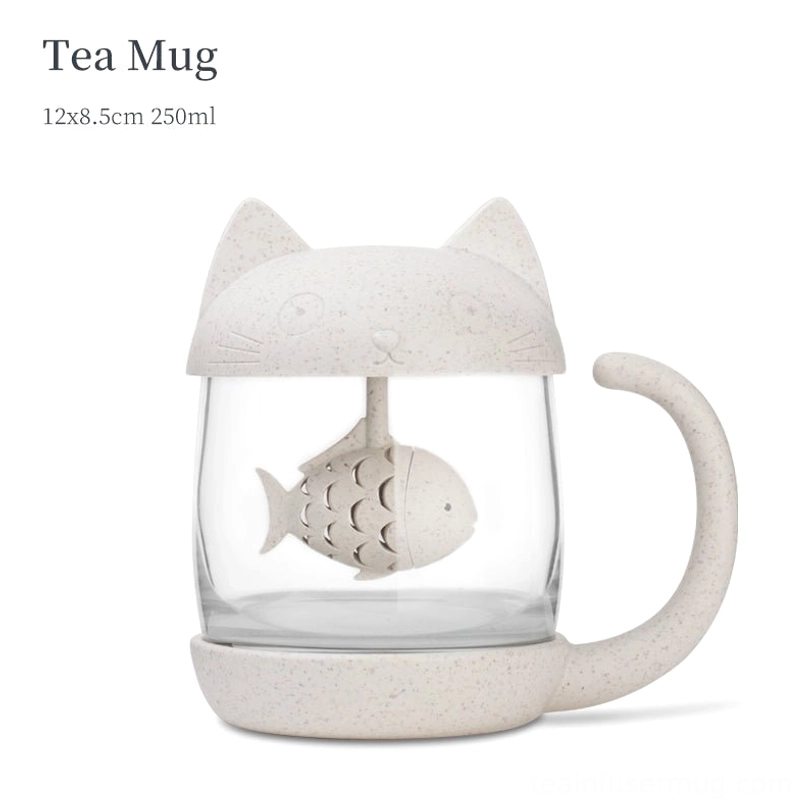 - Adorable Creative Cat & Fish Design: Cat-head lid, tail-shaped handle, and connected fish tea infuser create a sweet ‘cat catches fish’ scene that stands out on any surface. The soft heathered light grey finish pairs perfectly with the clear glass body, matching any home or office decor.