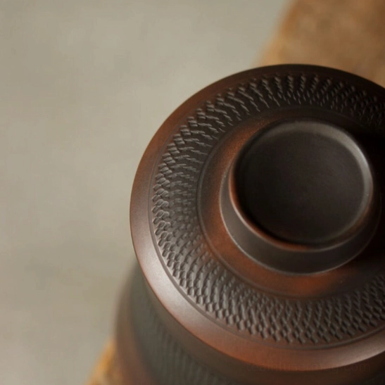 Made from high-fired natural ceramic clay, the mug features a subtle hand-textured woven pattern that adds unique, understated character, while embracing the quiet contemplative spirit of the Chinese tea ceremony.