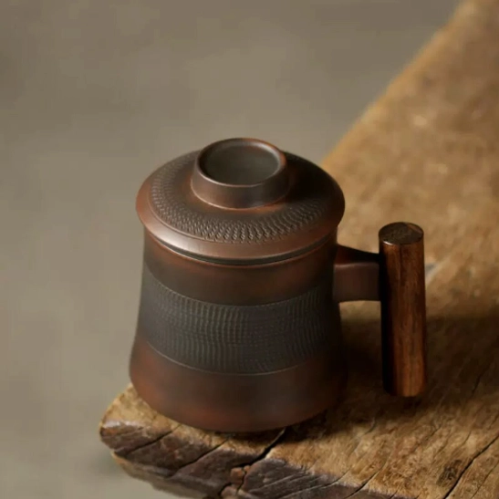 - Premium Safe Materials: Food-safe, lead-free high-fired ceramic naturally enhances tea aroma, paired with a solid natural wood handle that provides excellent heat insulation, so you can hold a hot mug comfortably without burning your hands.