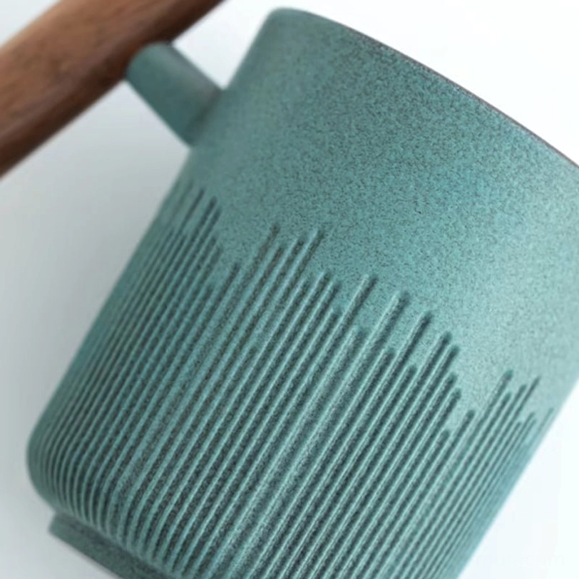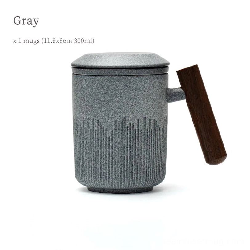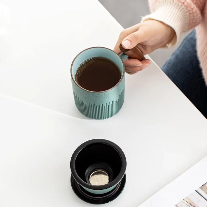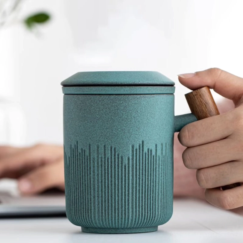 The subtle vertical textured pattern on the cup body adds gentle visual interest and a comfortable non-slip grip. Inspired by traditional Chinese ceramic design, it blends seamlessly with modern minimalist, new Chinese, and industrial interior styles, turning a simple daily tea infuser mug into a beautiful decorative piece for your desk or shelf.