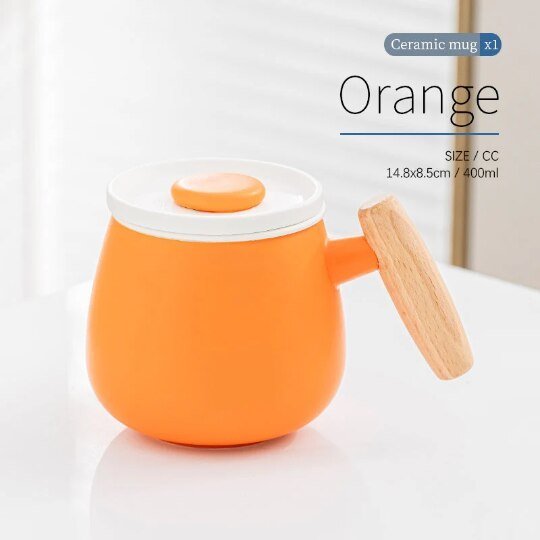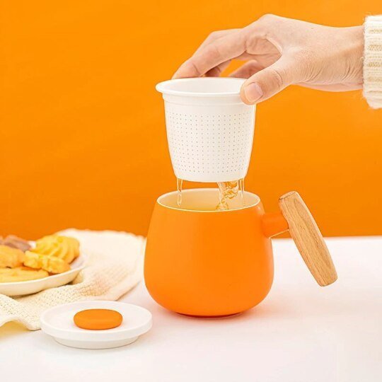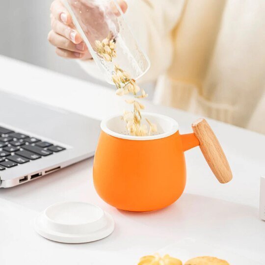 400ml Ceramic Tea Mug With Infuser – Wooden Handle Loose Leaf Tea Cup