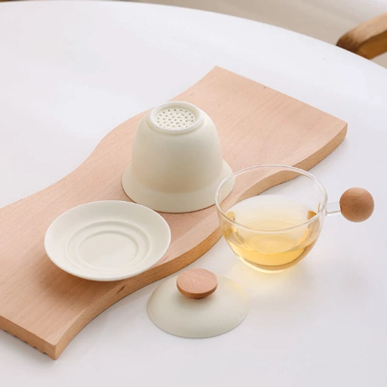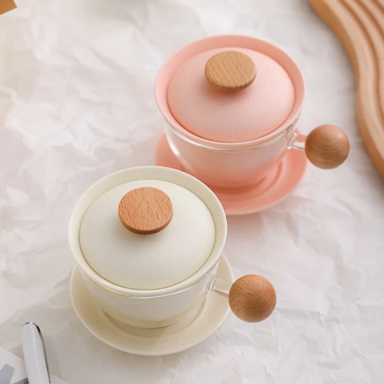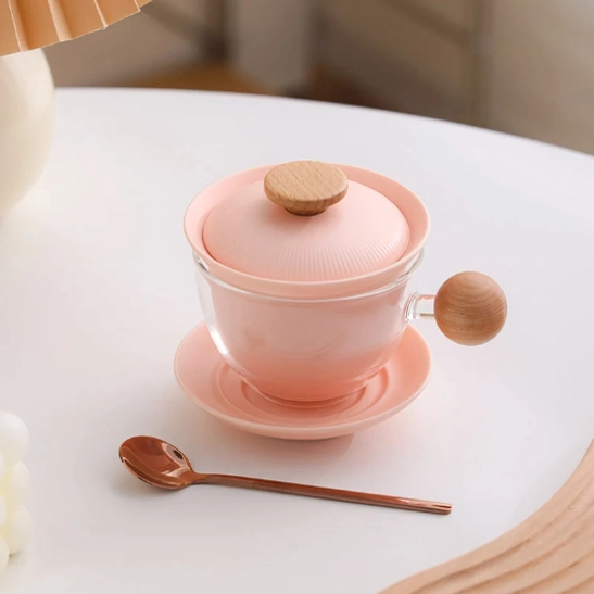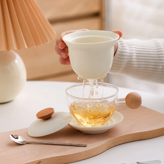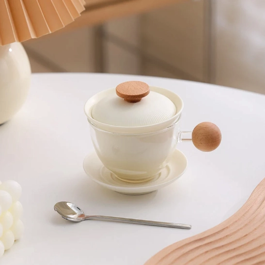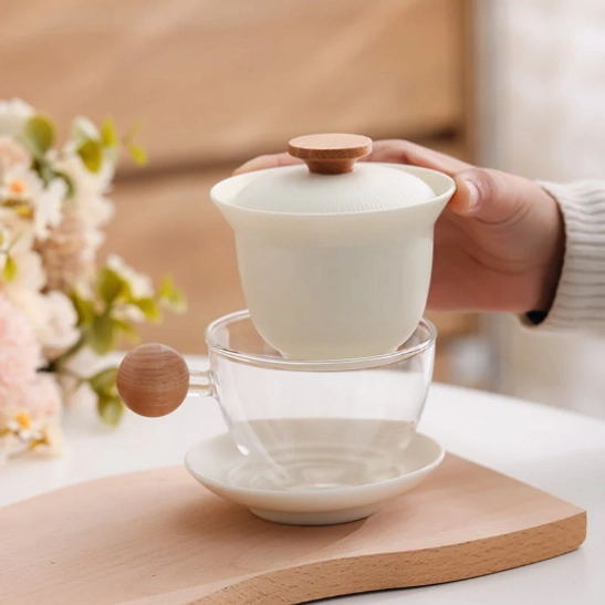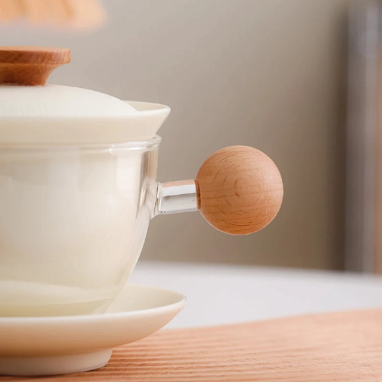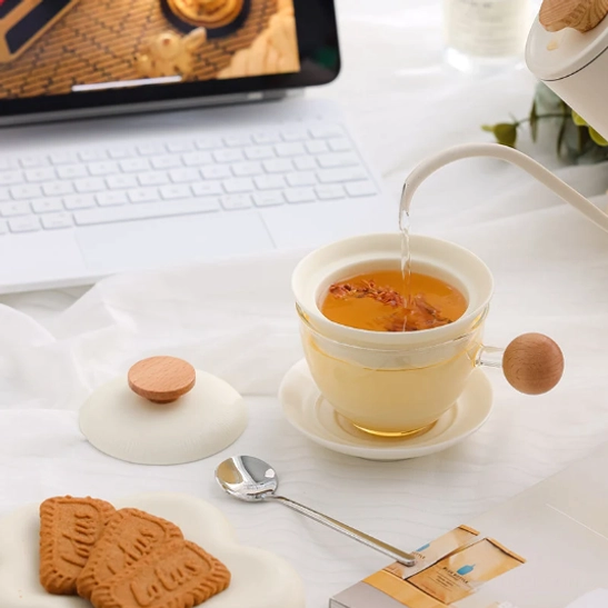 - Premium High-Quality Material Blend: The transparent heat-resistant borosilicate glass body lets you watch your tea leaves unfurl and check your brew color at a glance. Natural wood handle and lid knob provide excellent heat insulation, so you never burn your hands holding a hot mug. The ceramic infuser, lid, and saucer feature a smooth, stain-resistant warm glaze that is incredibly easy to clean.