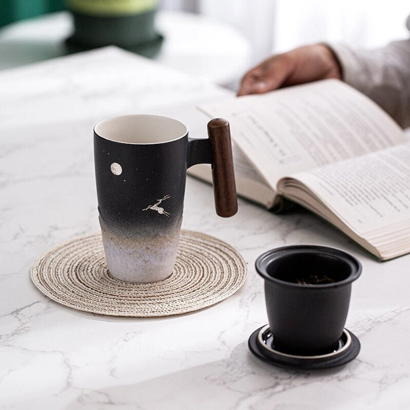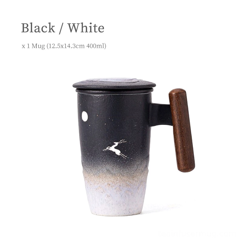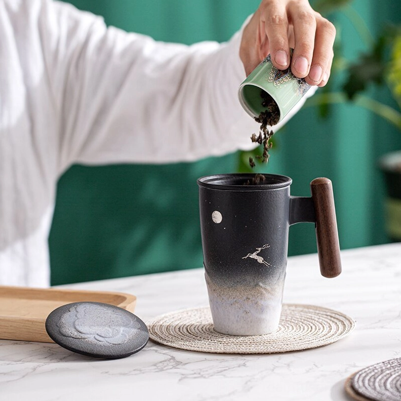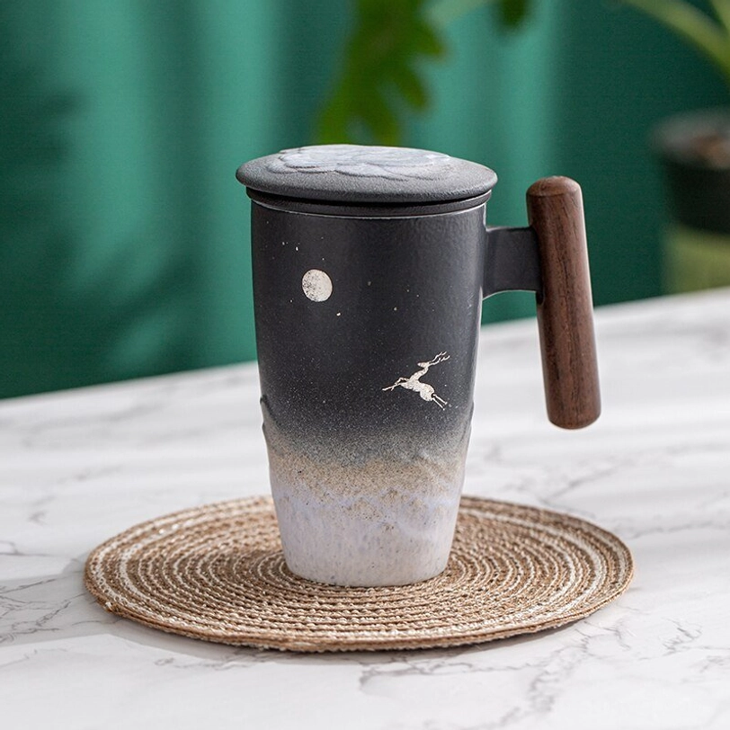 This thoughtfully designed all-in-one tea infuser mug blends traditional Chinese ceramic craftsmanship with modern practicality, made for loose leaf tea lovers who value both function and beautiful aesthetics. Adorned with a symbolic moon and deer pattern that carries deep meaning from Eastern culture, it’s more than just a tea cup — it’s a calming, charming addition to your daily tea ritual.