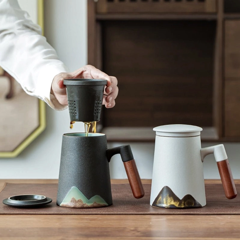 In Chinese tea culture, mountain landscapes symbolize tranquility, groundedness, and harmony with nature. Inspired by traditional Chinese ink wash painting, this mountain ceramic tea infuser mug brings the calm elegance of Eastern aesthetics to your daily tea ritual, turning every sip into a moment of peaceful retreat from busy modern life.