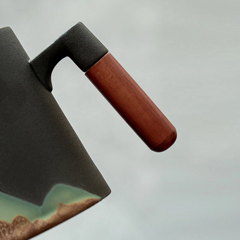 This mountain tea infuser mug is crafted with time-honored Chinese ceramic firing techniques, resulting in a smooth, non-porous matte surface that resists stains, odors, and cracking. It’s easy to clean by hand or in the top rack of your dishwasher, and built to hold up to years of daily use. The warm, natural texture of the sanded wood handle perfectly complements the cool matte ceramic for a balanced, comfortable feel you’ll love holding.