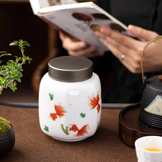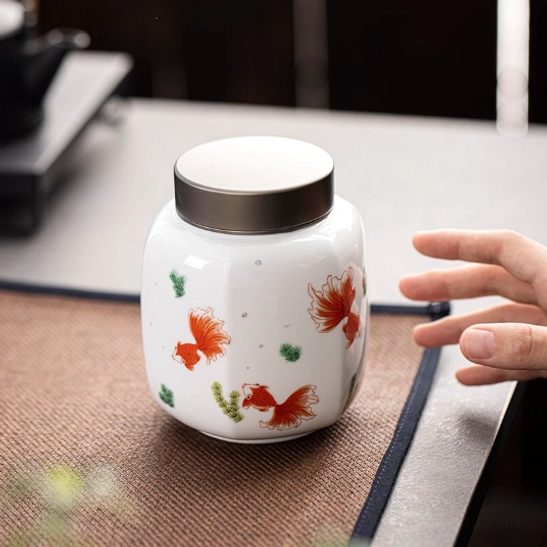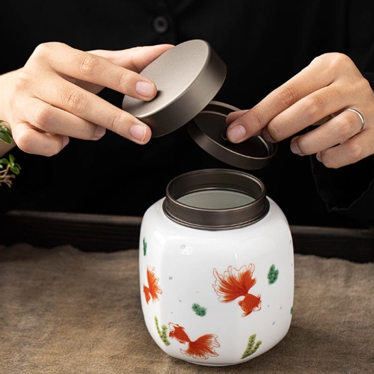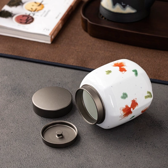 The vibrant red koi fish motif on this canister carries centuries of good fortune in Chinese culture. Koi symbolize abundance, prosperity, and ‘nian nian you yu’ (年年有余) — the traditional blessing of surplus and good luck year after year. This cultural symbolism makes this tea storage canister far more than a practical container: it’s a meaningful piece of traditional Chinese art for your home.