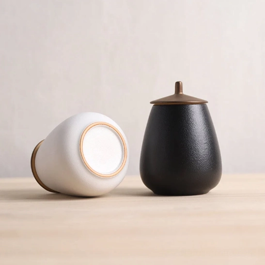 - Elegant Minimalist Design: Soft rounded pear shape with textured ceramic finish and warm antique bronze metal lid. Available in classic black and white to complement any decor style, from modern minimalist to new Chinese and Scandinavian.