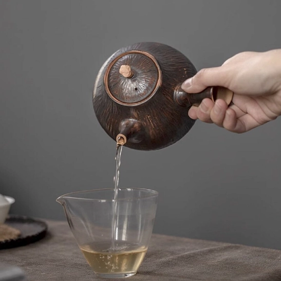 The rich deep brown glaze with subtle natural texture brings a warm, rustic elegant vibe to any tea space. Blending Chinese ceramic craft and Japanese kyusu design, this teapot fits perfectly in both traditional tea ceremonies and modern minimalist homes. In Chinese culture, a well-made teapot is a symbol of hospitality and tranquility, turning a simple cup of tea into a calming, mindful ritual.