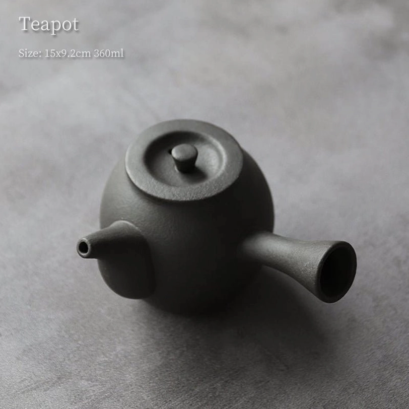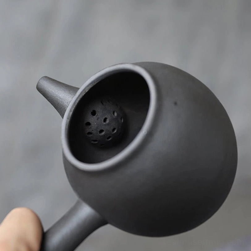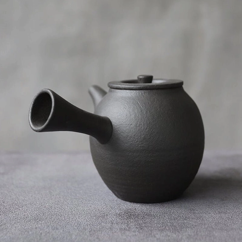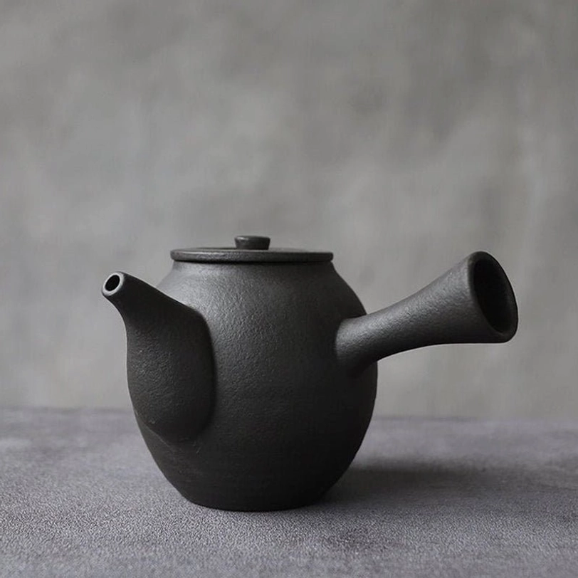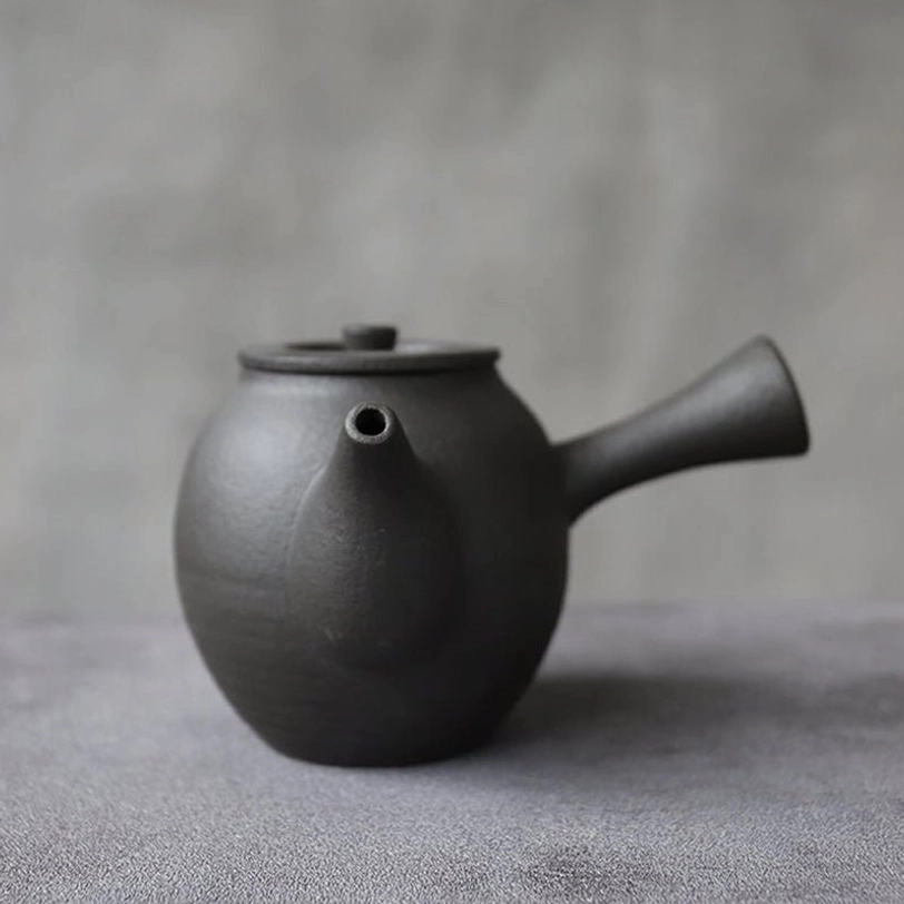 Originated from Japanese tea culture and embraced by modern tea lovers worldwide, the kyusu side-handle teapot is a beloved brewing tool known for its practical ergonomics and clean, understated style. This black ceramic kyusu combines traditional functional design with modern minimalist aesthetics, making it a perfect addition to any tea collection or home tea space.