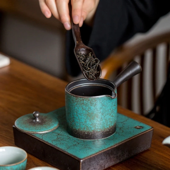 - Unique crackle glaze finish: Beautiful blue-green crackle texture paired with dark brown base creates a warm, rustic, timeless look that elevates any tea space