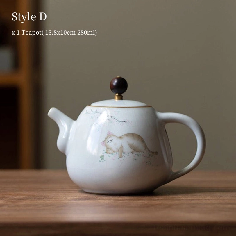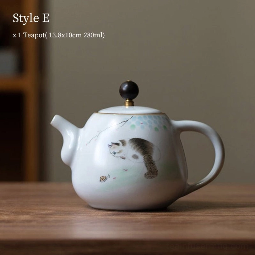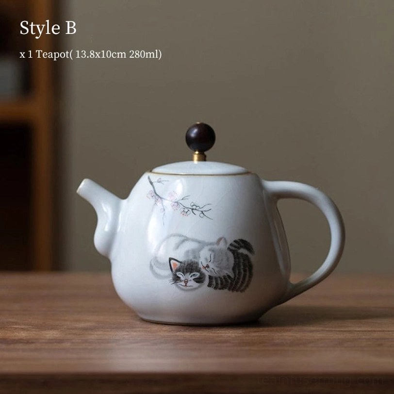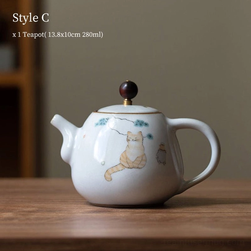 This adorable cat-themed ceramic teapot blends traditional Chinese ceramic craft with modern playful design, bringing both practical functionality and delightful aesthetic to your daily tea routine. With a 280ml capacity, it is perfectly sized for 1 to 2 servings of your favorite loose leaf tea, making it ideal for solo relaxation or small intimate tea moments.