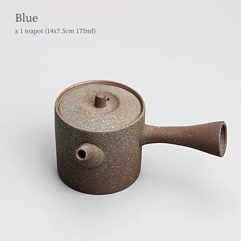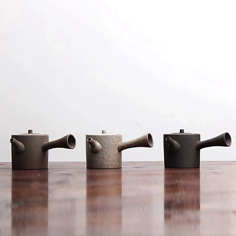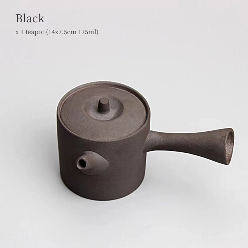 Originating from traditional Chinese gongfu cha (art of tea) and popularized in Japanese chanoyu (tea ceremony), the side handle (also called hengbing or kyusu) teapot is designed for comfortable, controlled pouring. This 175ml (6oz) rough ceramic model balances traditional craftsmanship with modern minimalist style, ideal for everyday tea enjoyment.