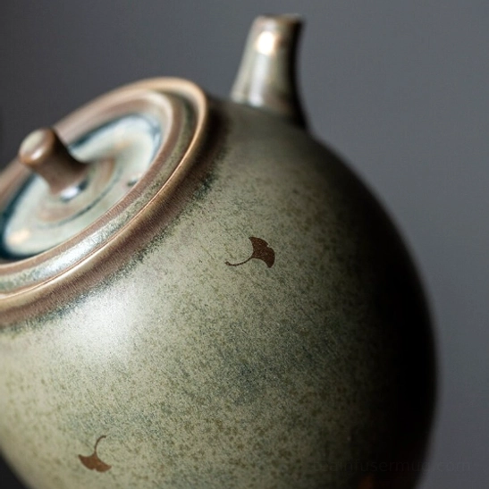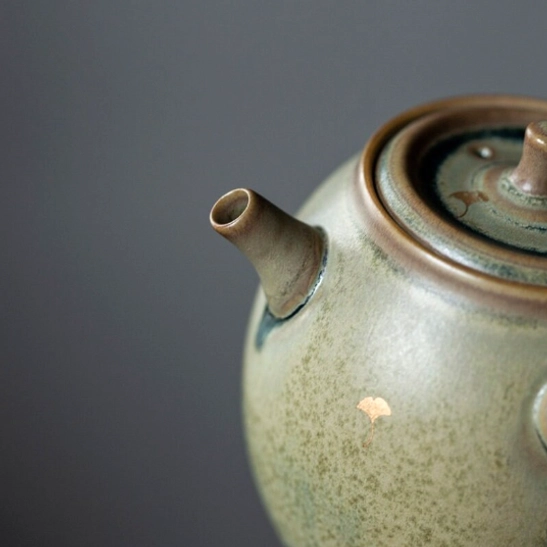 This teapot features a subtle mottled sage green glaze accented with a delicate golden ginkgo leaf motif. In Chinese culture, the ginkgo tree represents longevity, resilience, and peace, making this teapot both a functional brewing tool and a meaningful decorative piece for your tea space.