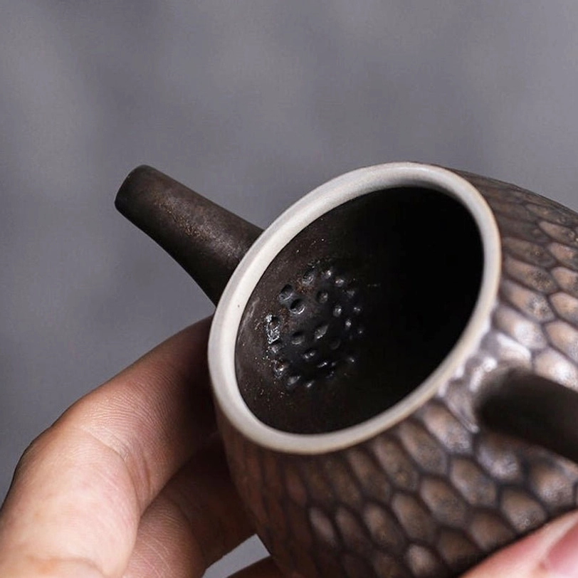 Gongfu Cha is a centuries-old Chinese tea brewing tradition that emphasizes slow, intentional preparation to bring out the best flavor from tea leaves. Small teapots like this one are at the heart of the practice: their compact size lets you control water temperature and steep time perfectly, producing a rich, balanced cup every time. The deep earthy brown tone of this teapot reflects the traditional Chinese aesthetic of wabi-sabi, finding beauty in textured, understated design.