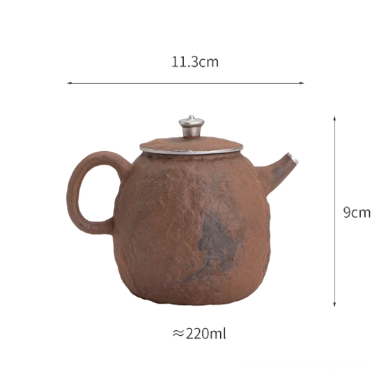 Authentic Jingdezhen Rough Pottery Teapot with 999 Silver Accents