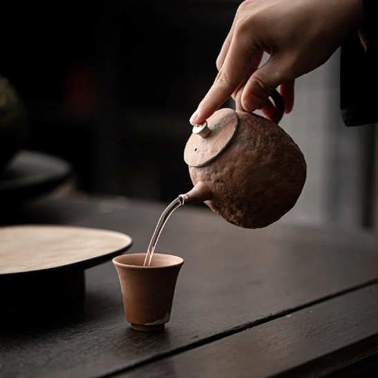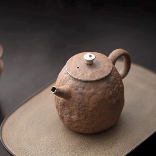 - Premium Material & Craftsmanship: Crafted from high-quality natural rough pottery clay, fire-glazed at extreme high temperatures to create a unique durable texture that ages beautifully with use. Finished with 999 fine silver accents on the spout and lid edge for a striking contrast of rustic and refined. Fully lead-free, food-safe for daily use.
